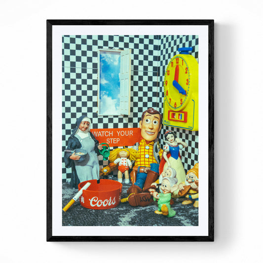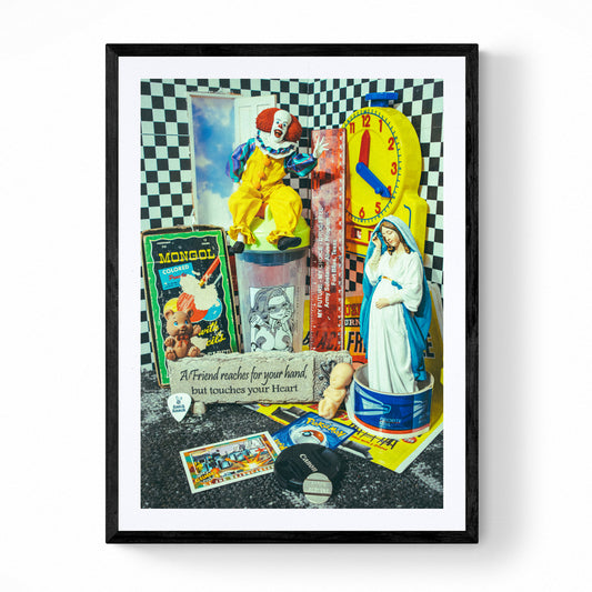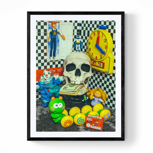 When I would visit my dad in the lower valley we would watch Robot Chicken on adult swim which inspired me into making these surreal sets. The art in this range is made by using unorthodox items. These works are simple pop culture still life compositions that tell a story."